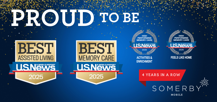 Somerby Mobile’s holistic memory care philosophy encourages stability, dignity, and individuality tendered by trained dementia caregivers.